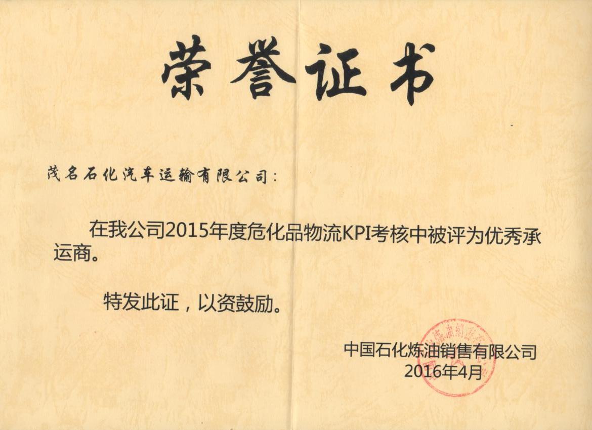 2015年度中石化優(yōu)秀承運(yùn)商